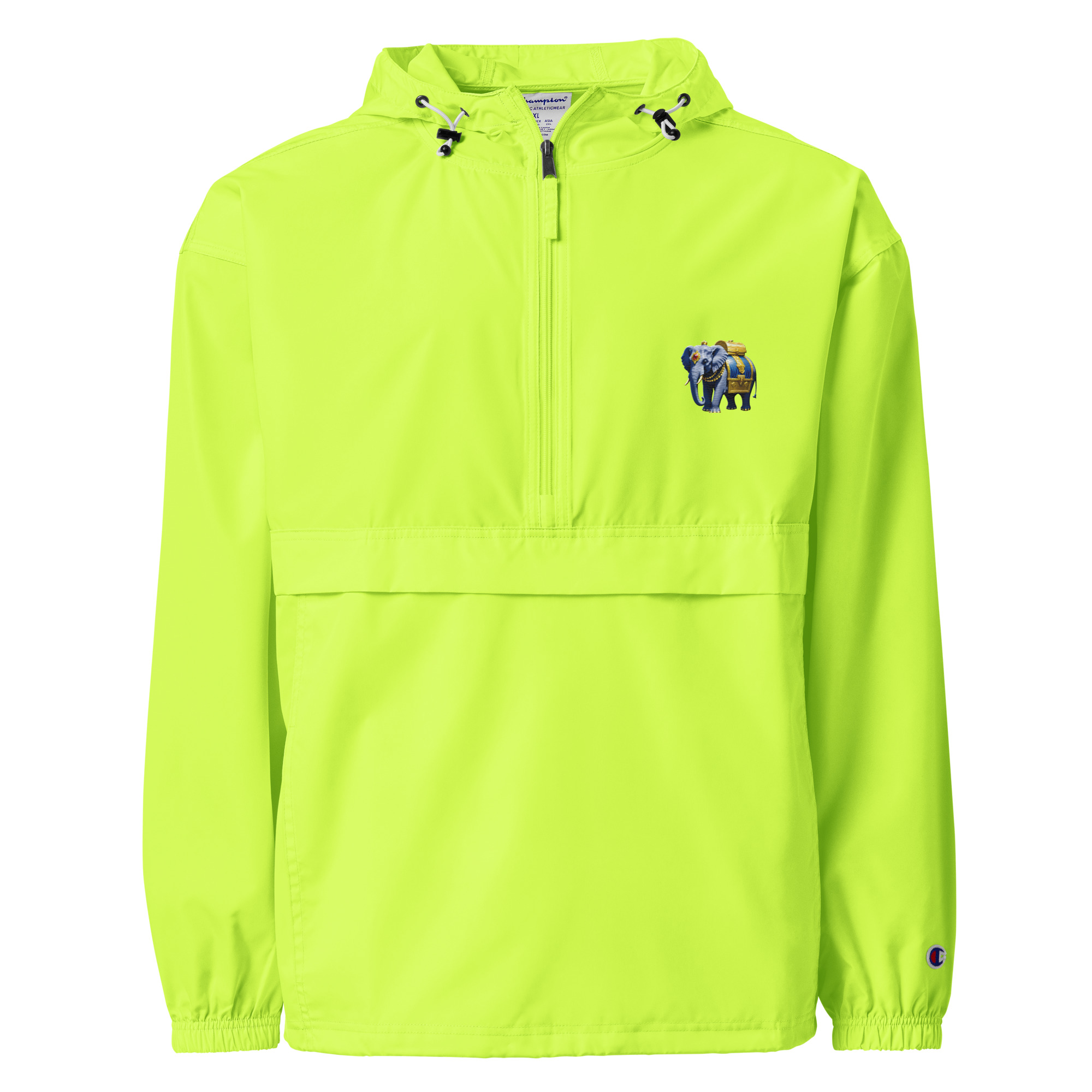 Protect yourself from the elements with this Golden Treasure Trunk Champion packable jacket. This wind and rain resistant polyester jacket with a detailed embroidery design has a practical hood, front kangaroo pocket, and zipped pouch pocket which you can pull out and use to scrunch the jacket into for convenient storage.